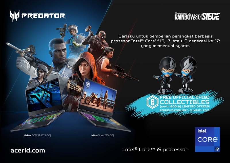 Trenteknologi.com – Mewujudkan komitmen perusahaan memberikan pelayanan terbaik kepada pelanggan, Acer Indonesia melalui lini Predator berkolaborasi dengan Ubisoft dan game Rainbow Six Siege. Melalui kolaborasi ini Acer menawarkan koleksi figure Chibi “Twitch” secara gratis untuk pelanggan yang melakukan pembelian produk laptop gaming Predator Helios 300, Predator Triton 300SE dan Nitro 5.
