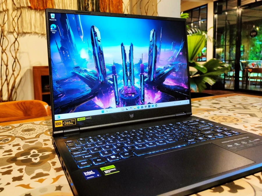Pengalaman gaming tidak akan lengkap tanpa layar yang memukau. Acer Predator Helios Neo 14 menawarkan layar 14,5 inci dengan resolusi WQXGA (3072 x 1920), memberikan detail visual yang luar biasa. Layar ini mendukung refresh rate hingga 165 Hz, yang berarti gerakan di dalam game akan terasa sangat halus dan responsif. Dengan tingkat kecerahan mencapai 400 nits dan color gamut sRGB 100% DCI-P3, Anda akan merasakan warna yang hidup dan akurat, ideal untuk bermain game maupun untuk keperluan kreasi konten.