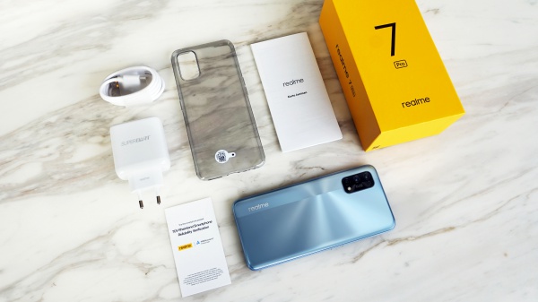 Saat membeli realme 7 Pro, pengguna akan mendapatkan kotak penjualan berwarna kuning cerah. Di dalam kotak penjualan tersebut, pengguna akan mendapatkan produk realme 7 Pro itu sendiri, 65W SuperDart Charge, kabel USB type-C, buku manual, case silikon untuk melindungi smartphone dan kartu TÜV Rheinland Smartphone Reliability Verification. Seperti yang selalu dilakukan oleh realme pada produk seri angka miliknya, khususnya varian Pro, realme selalu menyematkan spesifikasi smartphone flagship kelas atas sehingga membuat produk ini digemari oleh banyak anak muda yang menginginkan smartphone flagship dengan harga terbaik yang bisa mereka dapatkan.