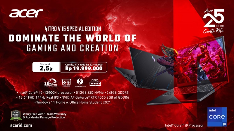Rayakan 25 Tahun di Indonesia, Acer Hadirkan Nitro V15 Special Edition dengan Intel Core i9