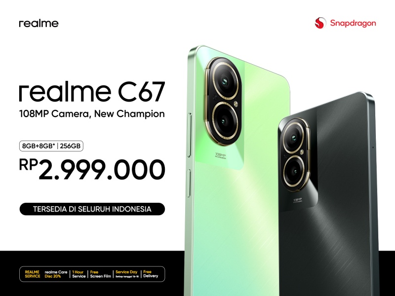 Meluncur di Indonesia sebagai smartphone dengan peningkatan tertinggi dalam sejarah realme C Series, realme C67 memori 8GB+8GB*|256GB kini sudah tersedia untuk dibeli di seluruh Indonesia mulai hari ini. Smartphone ini bisa didapatkan dengan harga Rp2.999.000 di seluruh kanal penjualan resmi baik online salah satunya di realme.com maupun offline seperti di realme Brand Store dan toko mitra.