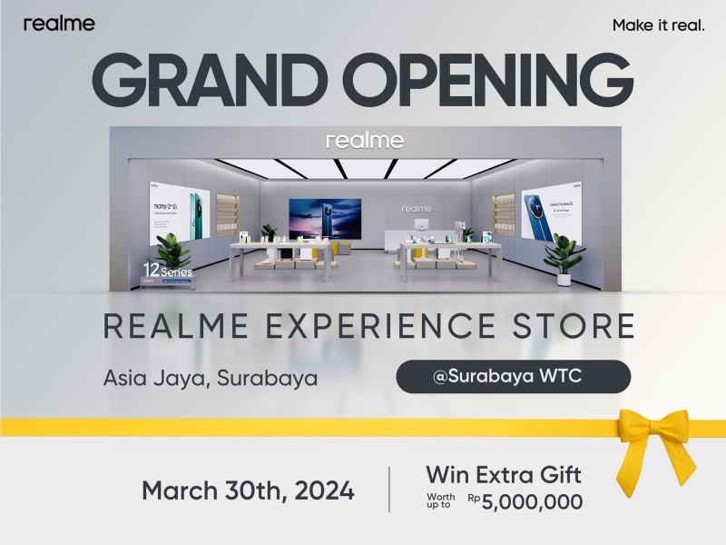 Trenteknologi.com – Menyambut bulan Ramadan dengan semangat yang lebih membara, realme, merek pilihan para anak muda, akan segera meresmikan realme Experience Store 3.5 pertama di Indonesia. Acara grand opening akan dilangsungkan pada Sabtu, 30 Maret 2024, di WTC Surabaya. Realme Experience Store 3.5 ini akan menjadi yang pertama di Indonesia dengan konsep desain terbaru yang menampilkan tampilan yang lebih modern, nyaman, dan segar. Dengan adanya realme Experience Store, realme bertujuan untuk menjangkau lebih banyak pengguna dan memberikan pelayanan yang semakin baik kepada anak muda Indonesia.