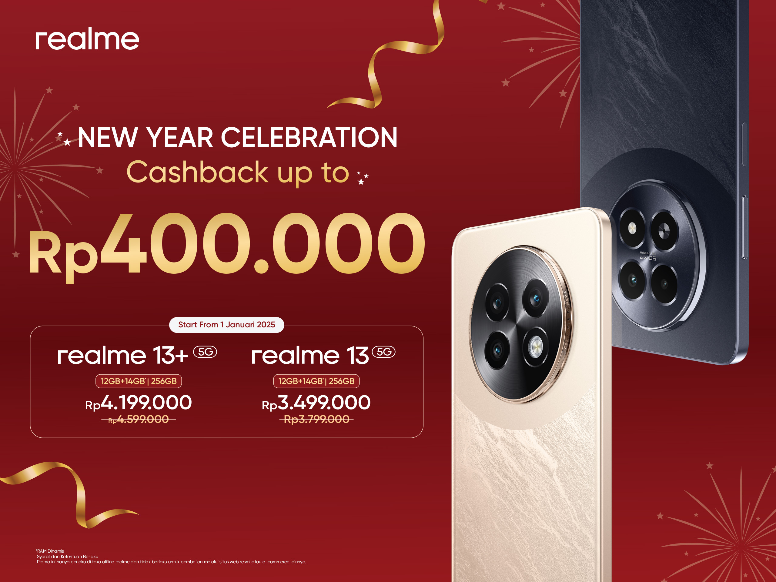 Untuk mendukung resolusi tahun baru para penggunanya, realme memberikan penyesuaian harga pada dua varian utama dari realme 13 Series 5G. realme 13+ 5G, yang sebelumnya dibanderol dengan harga Rp4.599.000, kini dapat dimiliki hanya dengan Rp4.199.000. Sementara itu, realme 13 5G yang sebelumnya dihargai Rp3.799.000 kini turun menjadi Rp3.499.000. Dengan harga baru ini, realme memberikan akses yang lebih luas kepada anak muda Indonesia untuk merasakan teknologi mutakhir dan performa andal dalam satu genggaman.