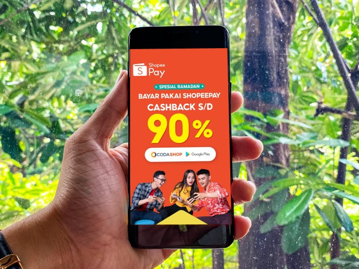 Untuk mengakomodir kebutuhan tersebut, ShopeePay, layanan pembayaran digital yang berkomitmen mendorong akses digitalisasi finansial bagi pelaku bisnis dan konsumen di seluruh Indonesia, menghadirkan program cashback di Google Play Store dan Codashop. Pengguna akan mendapatkan cashback 50% untuk pembelian aplikasi, top-up game, komik digital, hingga berlangganan video-on-demand di Google Play Store. Sementara itu, gamers akan mendapatkan cashback hingga 90% untuk pembelian Diamond game Mobile Legends: Bang Bang (MLBB) di Codashop.