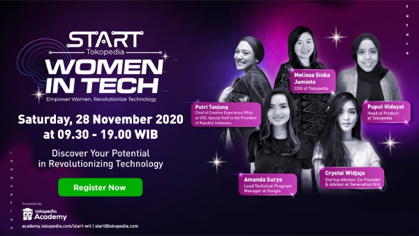 Trenteknologi.com – Tokopedia START Summit Extension dengan tema Women in Tech akan resmi digelar secara virtual pada 28 November 2020 pukul 09.30-19.00 WIB. Acara ini dapat diikuti siapa saja, yang punya ketertarikan akan bidang teknologi, secara gratis melalui situs Tokopedia Academy.
