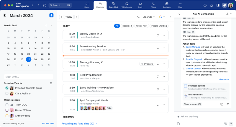 Ask AI Companion merupakan asisten digital yang disempurnakan untuk membantu pengguna mempersiapkan hari kerja mereka di Zoom Workplace. Fitur ini akan mengumpulkan, menganalisis, dan membagikan informasi dari berbagai platform, seperti Zoom Meetings, Mail, Team Chat, Notes, dan Docs, untuk membantu pengguna mempersiapkan dan merangkum rapat, menyusun agenda, dan memahami pesan-pesan yang masuk.