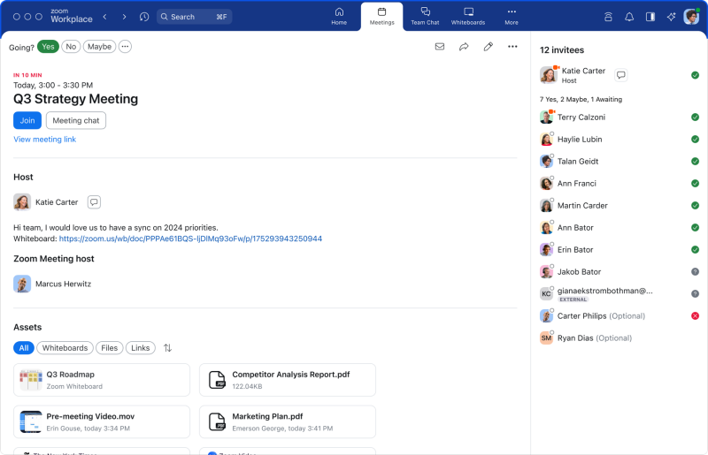 Dengan peluncuran Zoom Workplace, Zoom juga memperbarui pengalaman pengguna pada Zoom Meetings dengan menambahkan berbagai fitur baru, seperti Meetings tab, multi-speaker view, portrait lighting berbasis AI, dan generative AI virtual backgrounds. Selain itu, di Zoom Team Chat, komunikasi asinkron dapat ditingkatkan dengan Team Chat tabs, shared spaces, dan workflow automation.
